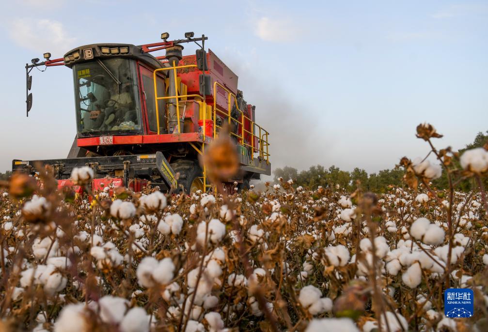 眼下,新疆多地棉花陆续进入采收季,田间地头一辆辆采棉机来回穿梭进行采棉作业,满载棉包的车辆驶入轧花厂,我国最大产棉区一派繁忙景象。