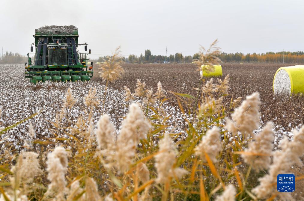 眼下,新疆多地棉花陆续进入采收季,田间地头一辆辆采棉机来回穿梭进行采棉作业,满载棉包的车辆驶入轧花厂,我国最大产棉区一派繁忙景象。
