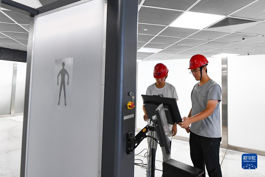 11月3日,工人在海口新海港和南港“二线口岸”(客运)客运查验设施、设备建设项目上进行调试安装。