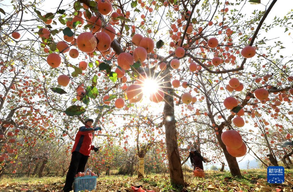 11月4日,河北省平山县孟家庄镇元坊村的农民在苹果种植基地采收苹果。