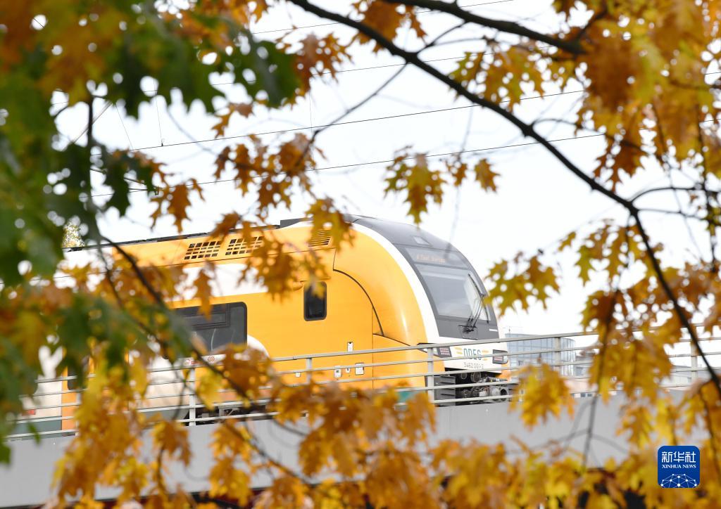 德国首都柏林近日秋意渐浓,穿行的列车与斑斓的秋叶相互映衬,呈现出一幅幅美丽画卷。