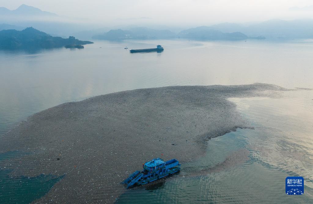 今年汛后三峡水库蓄水至175米水位以后,水库两岸消落带上的枯枝、秸秆、塑料等漂浮物聚集江面。位于三峡坝上库首的湖北省宜昌市秭归县积极组织清漂作业人员和机械作业船舶,进行全天候拦截清理,以确保三峡水库水质、船舶行驶和三峡枢纽运行安全。