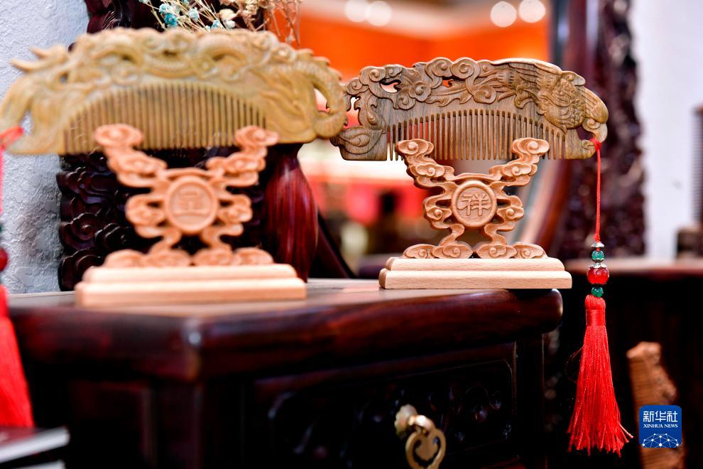 近年来,山东省济宁市嘉祥县大张楼镇依托省级非遗嘉祥木雕技艺资源,在木雕龙头企业带动下,大力发展木梳产业。嘉祥木梳将传统中国画的元素融入到设计中,让用户感受传统文化魅力。目前,嘉祥县大张楼镇木梳产业年产值过亿元,已成为当地乡村振兴的特色主导产业之一。