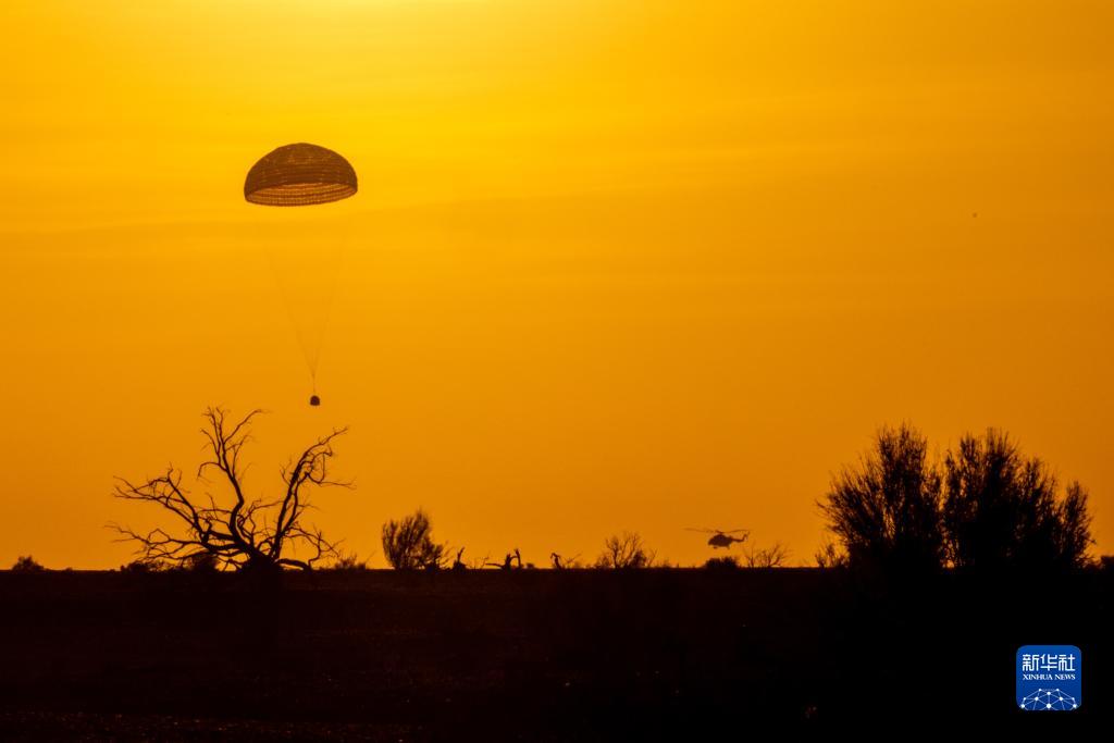 10月31日,神舟十六号载人飞船返回舱在东风着陆场成功着陆。