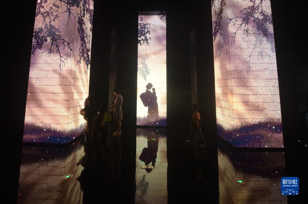 10月28日,观众在浙江文学馆数字多媒体展厅观看通过数字科技展示的艾青创作的现代诗歌《大堰河——我的保姆》。