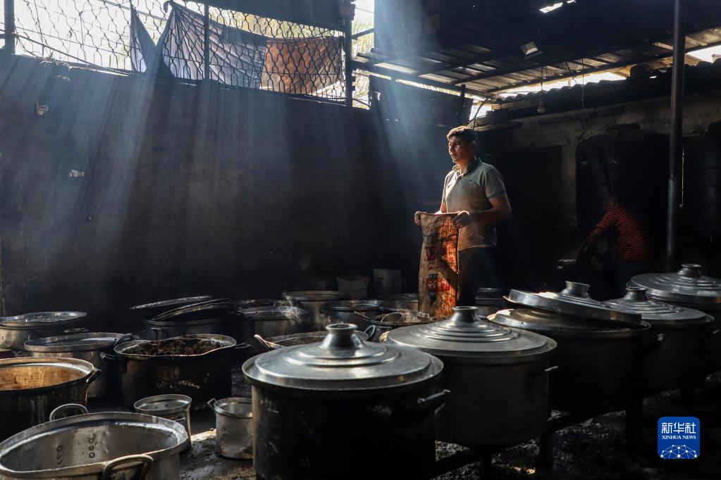11月3日,在加沙地带南部城市拉法,人们在煤气中断后用柴火做饭。