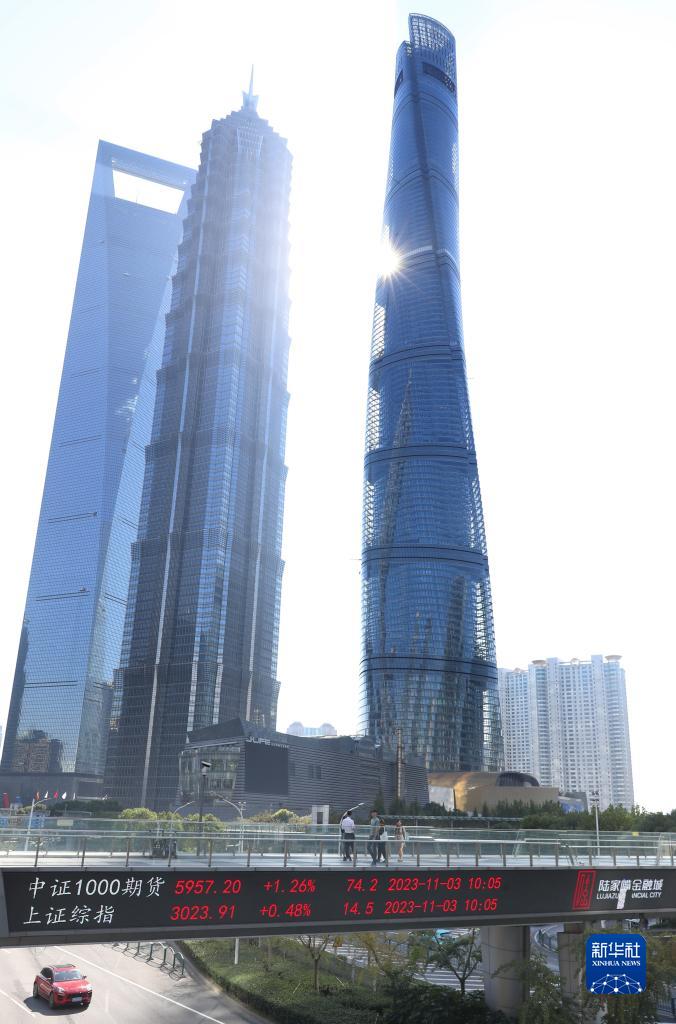 11月3日,市民和游客行走在上海陆家嘴天桥。