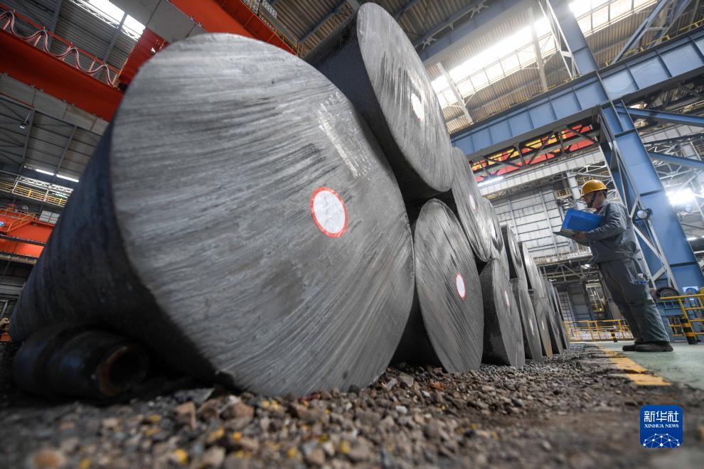 11月4日,在承德市营子区一家特殊钢生产企业,工人在核对连铸圆坯信息。