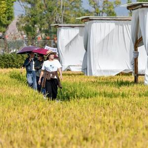 11月3日,游客在位于黄梅县大河镇的袁夫稻田游玩。