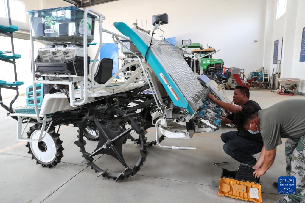 11月4日,技术员在南通市通州区十总镇育民村农场保养无人插秧机设备。