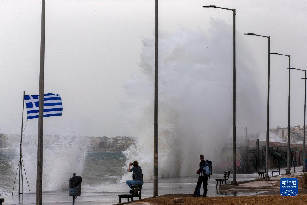 这是11月4日在希腊雅典海边拍摄的大浪。