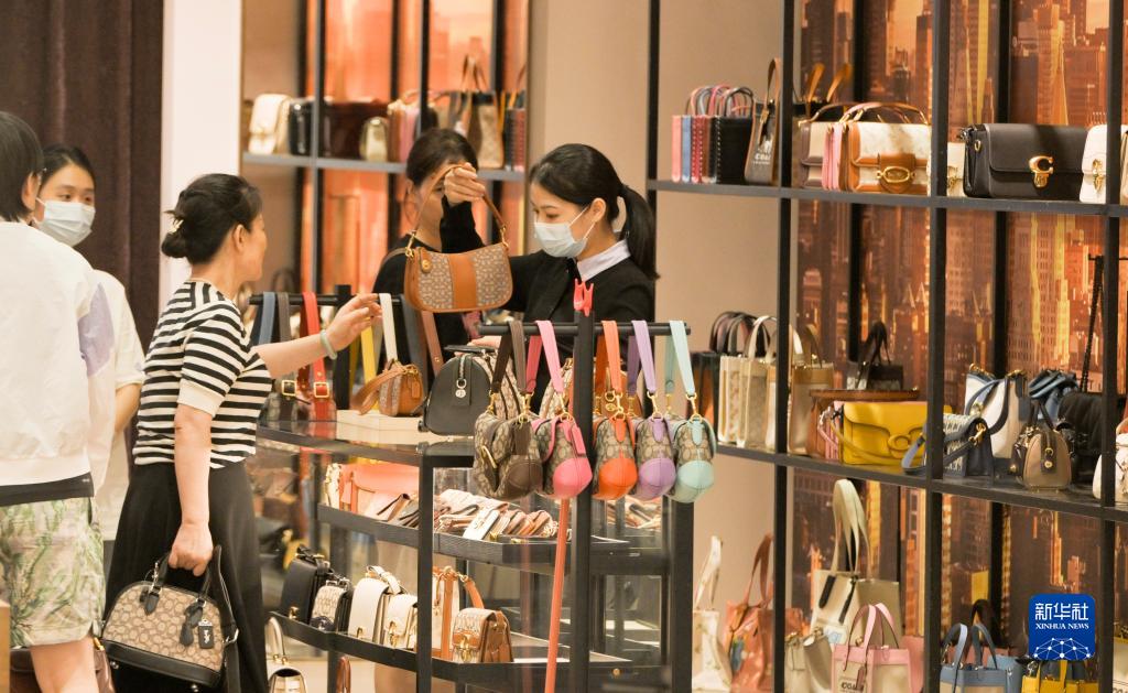 游客在中免集团海口日月广场免税店选购商品(8月5日摄)。