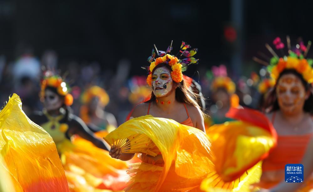11月4日,在墨西哥首都墨西哥城,演员参加亡灵节游行。