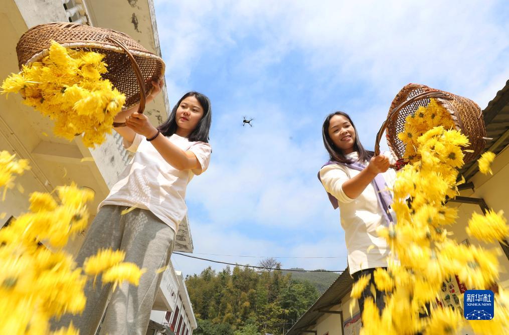 近日,湖南省衡阳市南岳区寿岳乡岳林村皇菊种植基地种植的高山皇菊进入收获期,当地村民抢抓晴好天气采摘、加工。近年来,岳林村依托当地高山林地,大力发展观赏性强、经济价值高的高山皇菊种植,推动当地农旅融合发展,带动农民增收。
