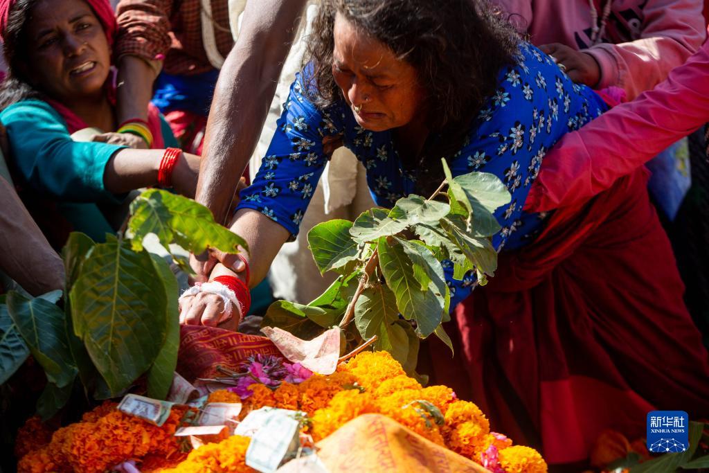 11月5日,在尼泊尔鲁古姆西区,人们因亲人的离去悲痛不已。