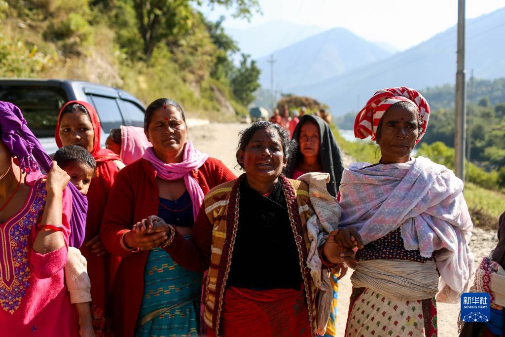 11月5日,在尼泊尔鲁古姆西区,人们因亲人的离去悲痛不已。