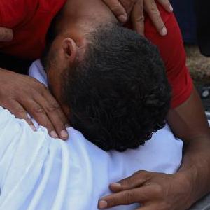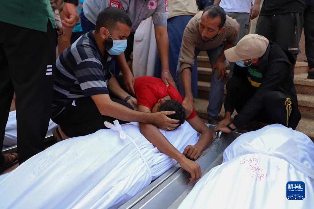 11月5日,在加沙地带南部城市汗尤尼斯,人们悼念在冲突中去世的亲友。