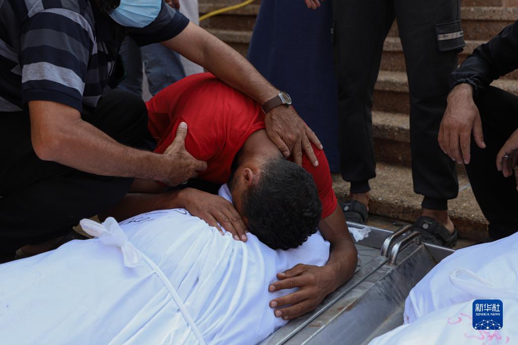 11月5日,在加沙地带南部城市汗尤尼斯,人们悼念在冲突中去世的亲友。