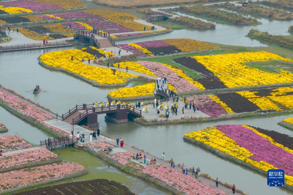 11月4日,游客在江苏省兴化市千垛景区赏菊游玩(无人机照片)。