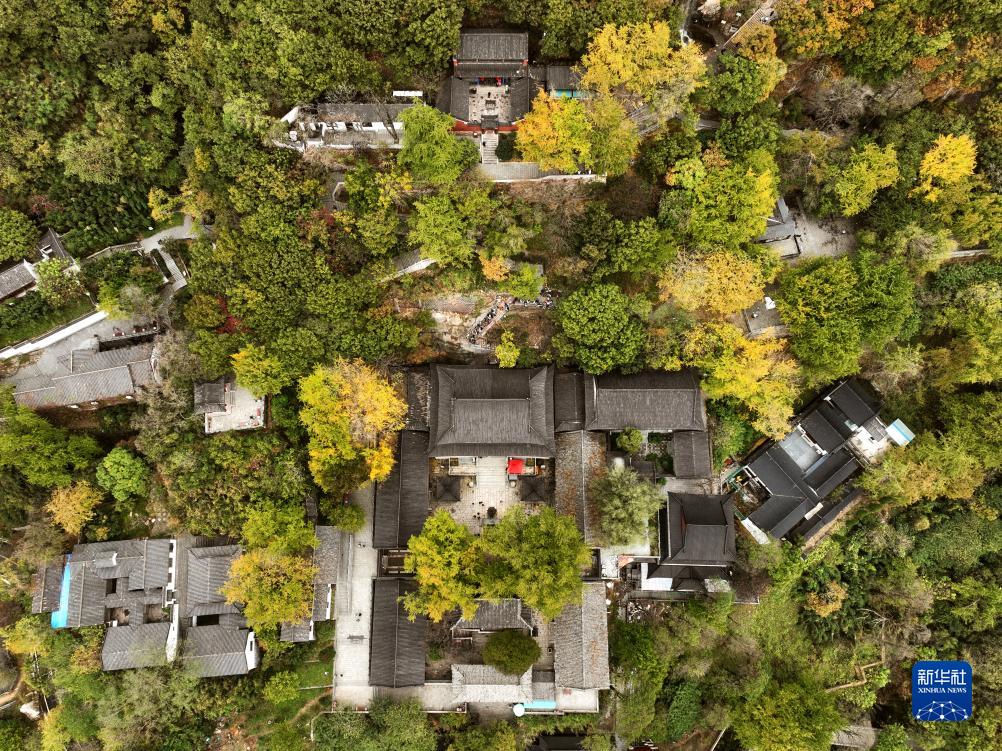这是11月4日在江苏省连云港市花果山三元宫拍摄的秋景(无人机照片)。
