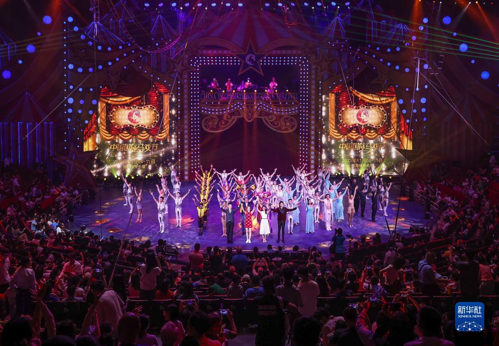 演员在第七届中国国际马戏节参演节目A场展演后集体谢幕(11月5日摄)。