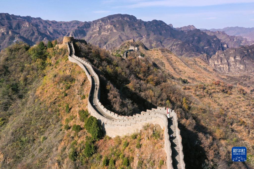 11月6日,这是在天津市蓟州区拍摄的黄崖关长城太平寨段秋景(无人机照片)。
