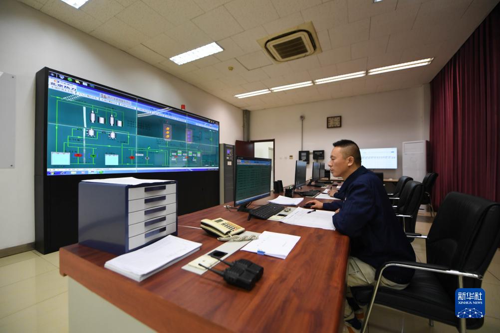 11月6日,北京市热力集团有限责任公司海淀分公司的技术人员在控制燃气供热设备运行。