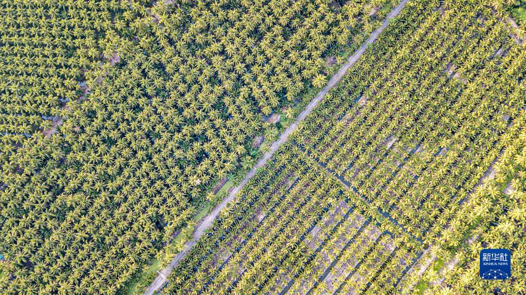 这是11月3日在泰国叻武里府丹嫩沙多拍摄的椰子园(无人机照片)。