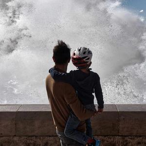 近日,受风暴天气影响,法国尼斯海岸巨浪拍岸,吸引人们驻足观看。