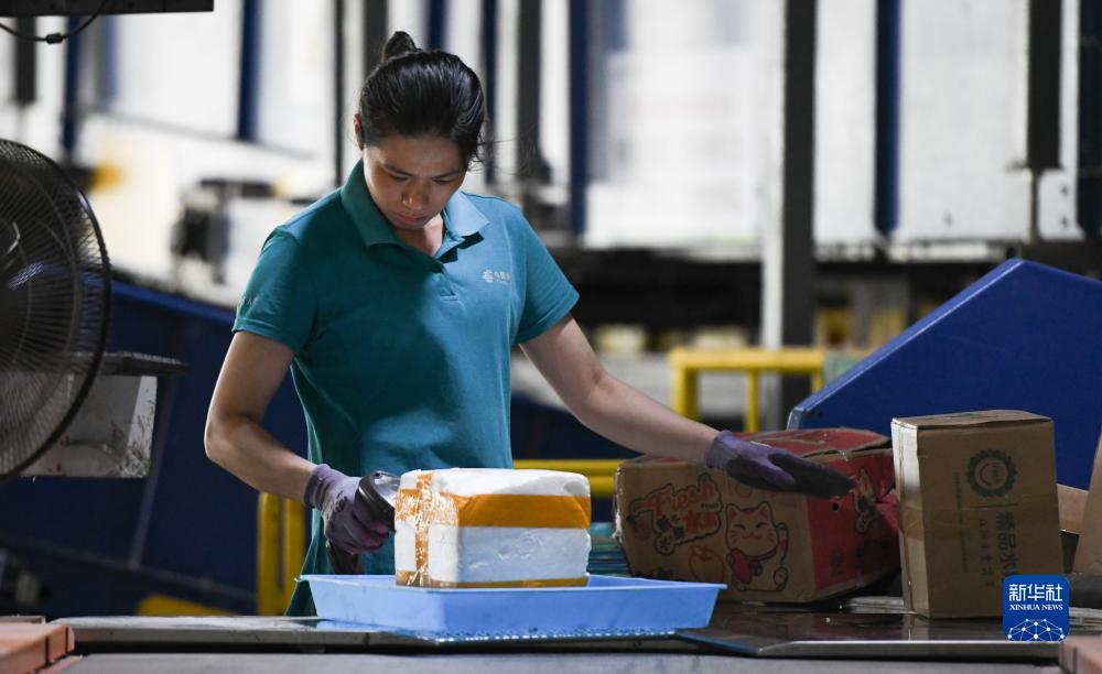 11月6日,在中国邮政集团有限公司海口邮区中心,工作人员在分拣包裹。