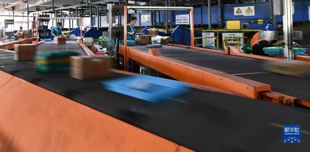 11月6日,在中国邮政集团有限公司海口邮区中心,工作人员在分拣包裹。