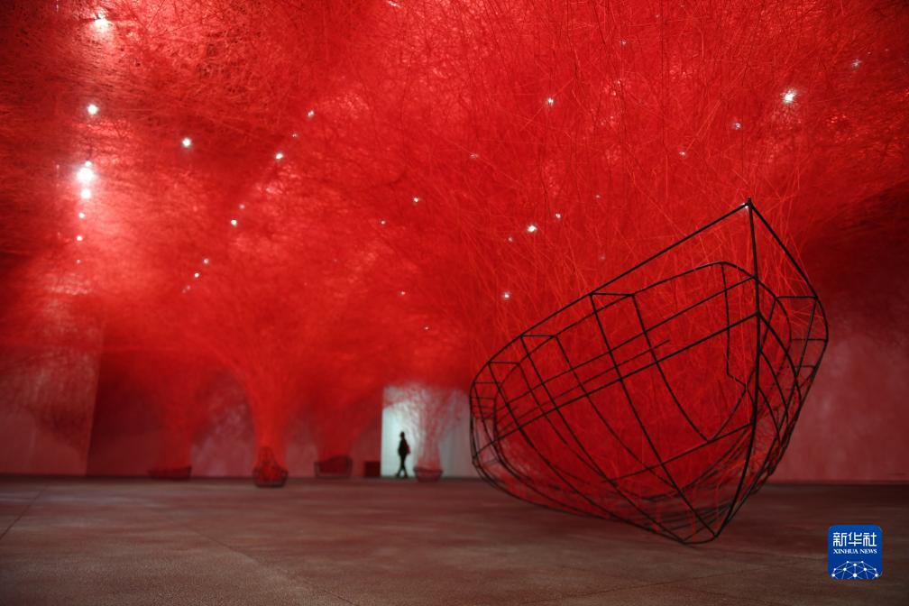 11月6日,参观者在深圳美术馆(新馆)的“盐田千春:颤动的灵魂”展览上观赏艺术家盐田千春的艺术作品。