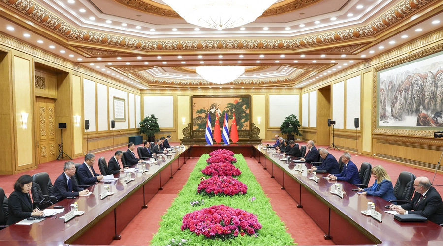 11月6日下午,国家主席习近平在北京人民大会堂会见古巴总理马雷罗。