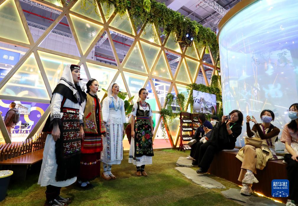 11月6日,演职人员在第六届进博会国家展塞尔维亚展台演唱传统歌曲。