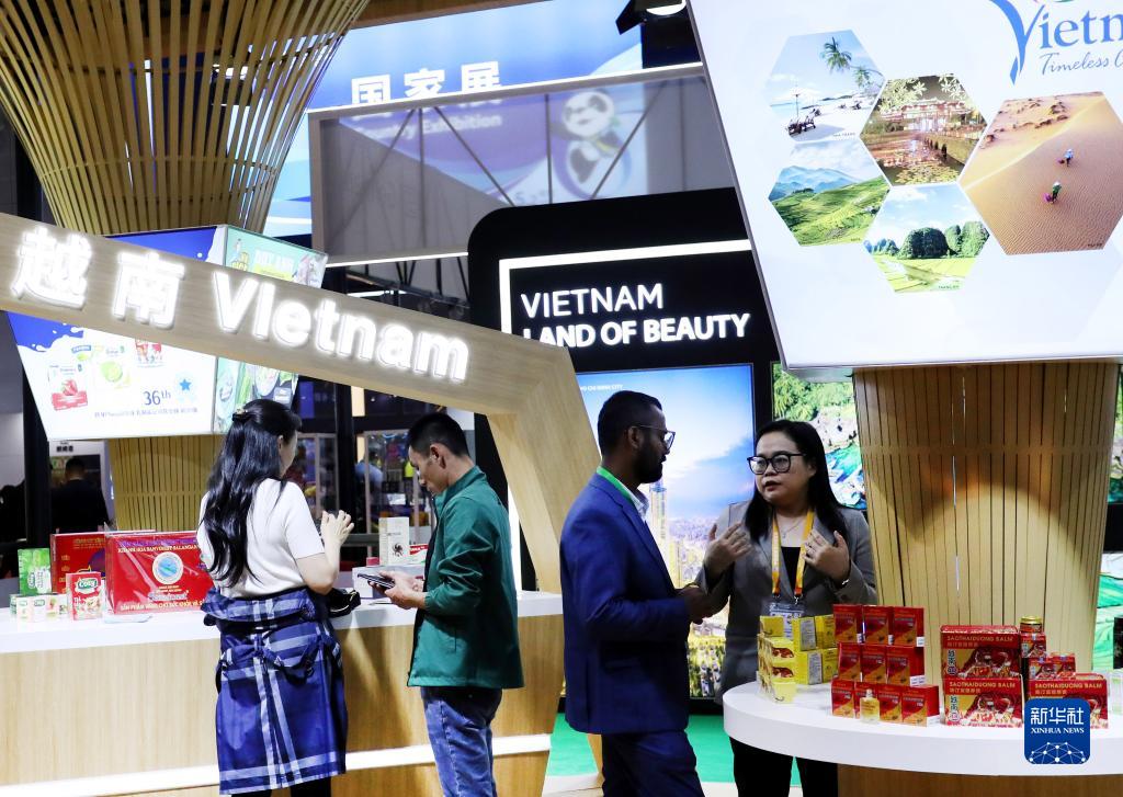 这是11月6日拍摄的第六届进博会国家展越南展台外景。