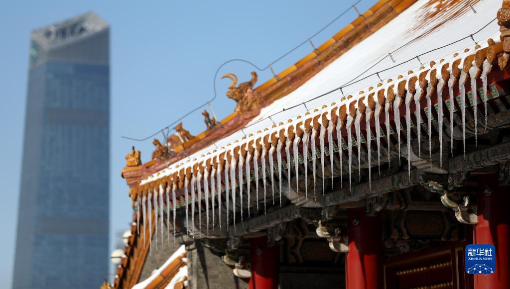 这是11月7日拍摄的雪后沈阳故宫一处屋檐。