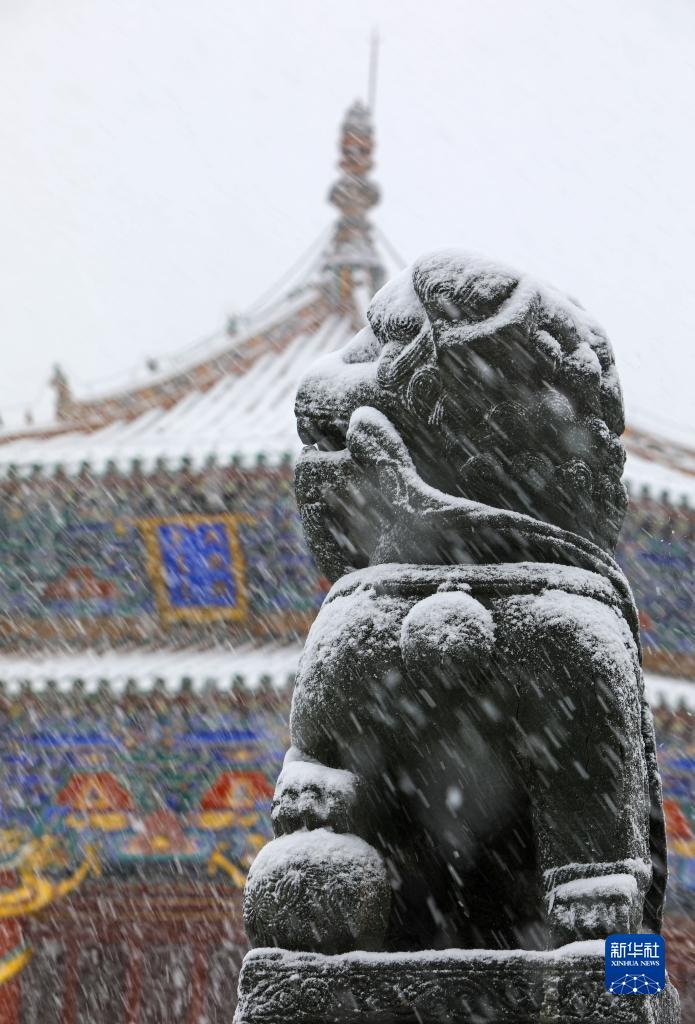 11月6日,沈阳市迎来今年入冬第一场大范围降雪,沈阳故宫博物院在皑皑白雪的映衬下古朴宁静。