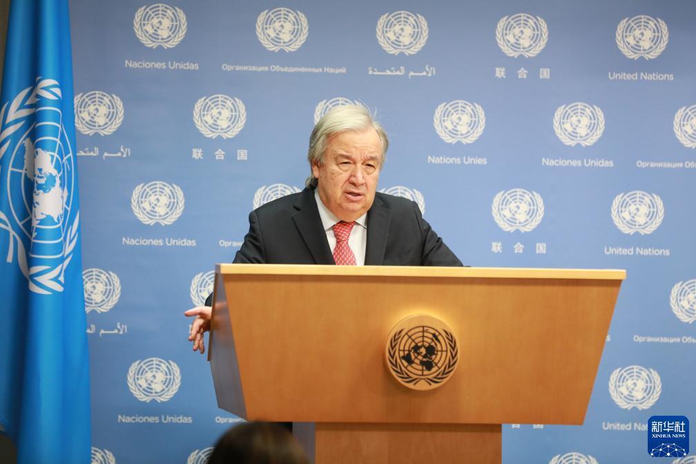 11月6日,联合国秘书长古特雷斯在位于纽约的联合国总部举行的记者会上讲话。