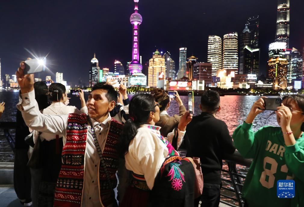 马马尼大叔在上海外滩游览时用手机拍照(11月2日摄)。