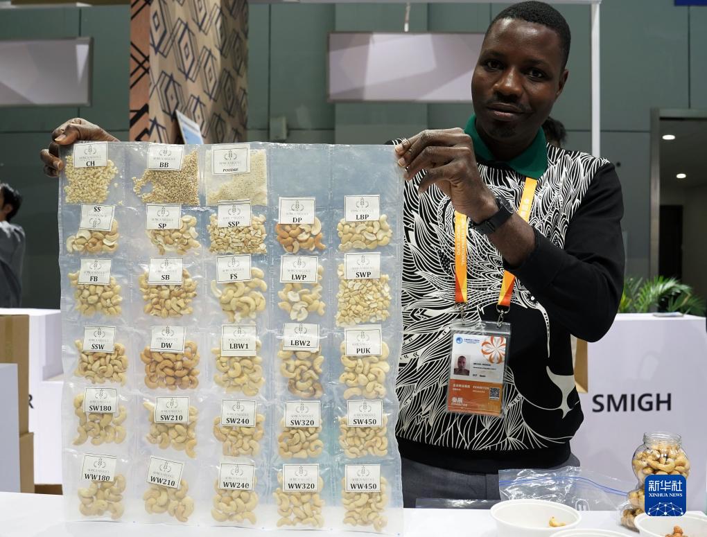 11月7日,在第六届进博会食品及农产品展区展示的来自贝宁的坚果。