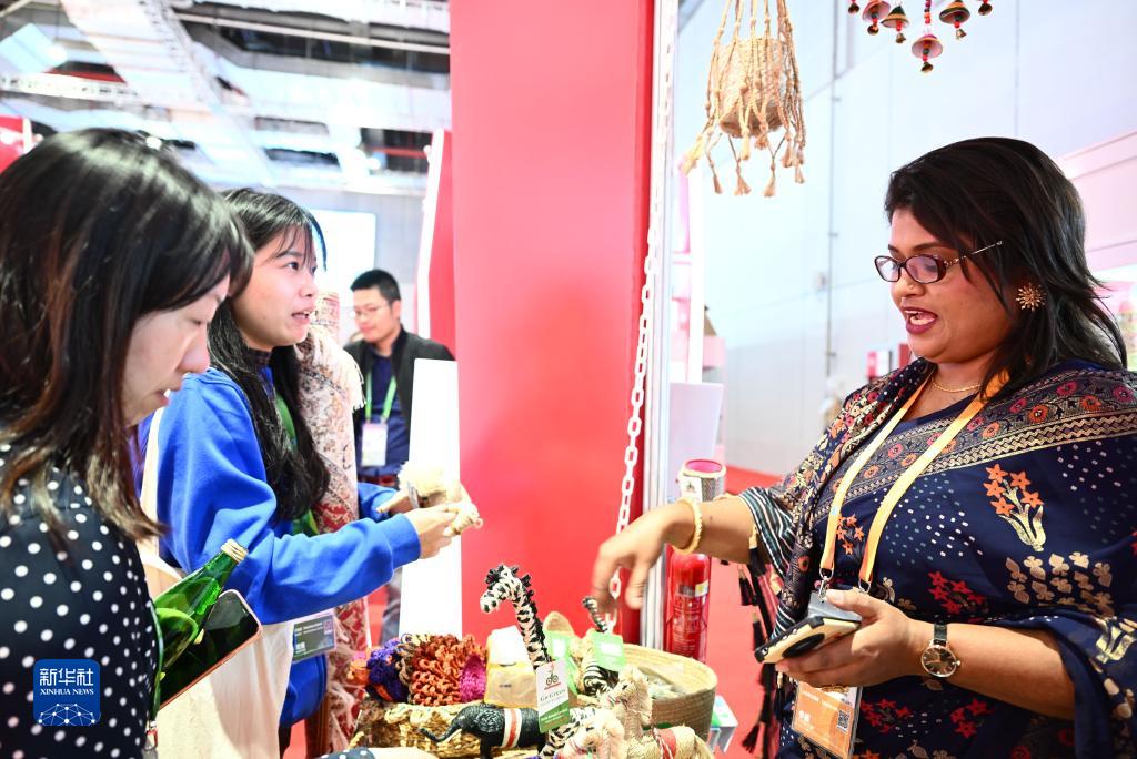 2018年,正在中国攻读博士学位的孟加拉国达达公司创始人萨夫第一次参加进博会,他带来的黄麻制成的地毯、箩筐、包等特色商品大受欢迎。现在,萨夫的生意越做越大,每月向中国的出口额达5万至10万美元。萨夫说,在孟加拉国,很多乡村的贫困家庭没有工作机会,尤其是妇女几乎找不到有收入的工作,但通过编织黄麻制品,2000多个乡村家庭有了足够让孩子们上学的收入,有机会通过教育告别贫穷。