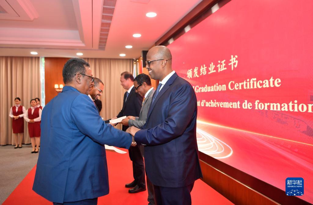 当日,首届亚吉铁路高层管理人员培训在天津铁道职业技术学院举行结业仪式。本届培训共有来自埃塞俄比亚、吉布提的35名技术、人事等高管参加,相继完成了为期两个月铁路运营方面的知识培训,未来将致力于亚吉铁路运营服务,助力当地经济社会发展。