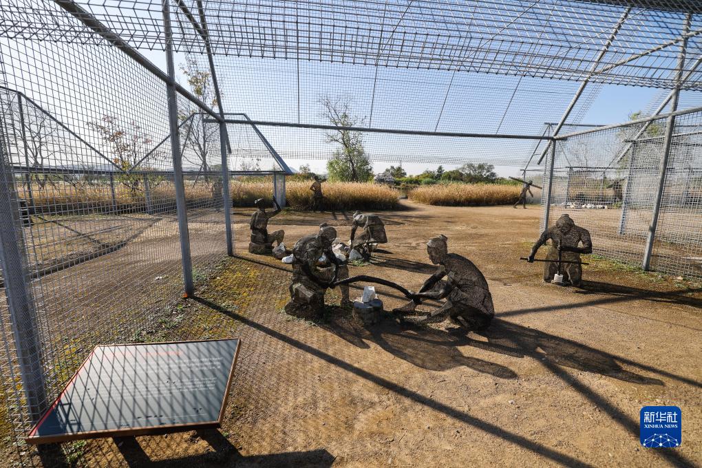 11月7日拍摄的良渚古城遗址公园内钟家港古河道旁的居址作坊展示区。