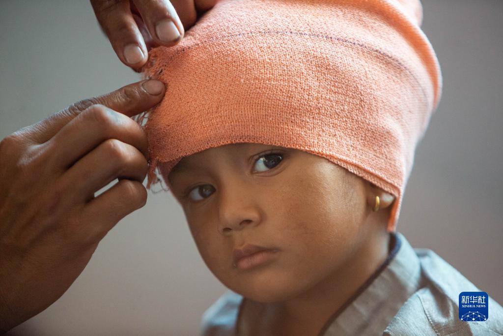 11月7日,地震伤者在尼泊尔尼泊尔根杰一所医院内接受治疗。