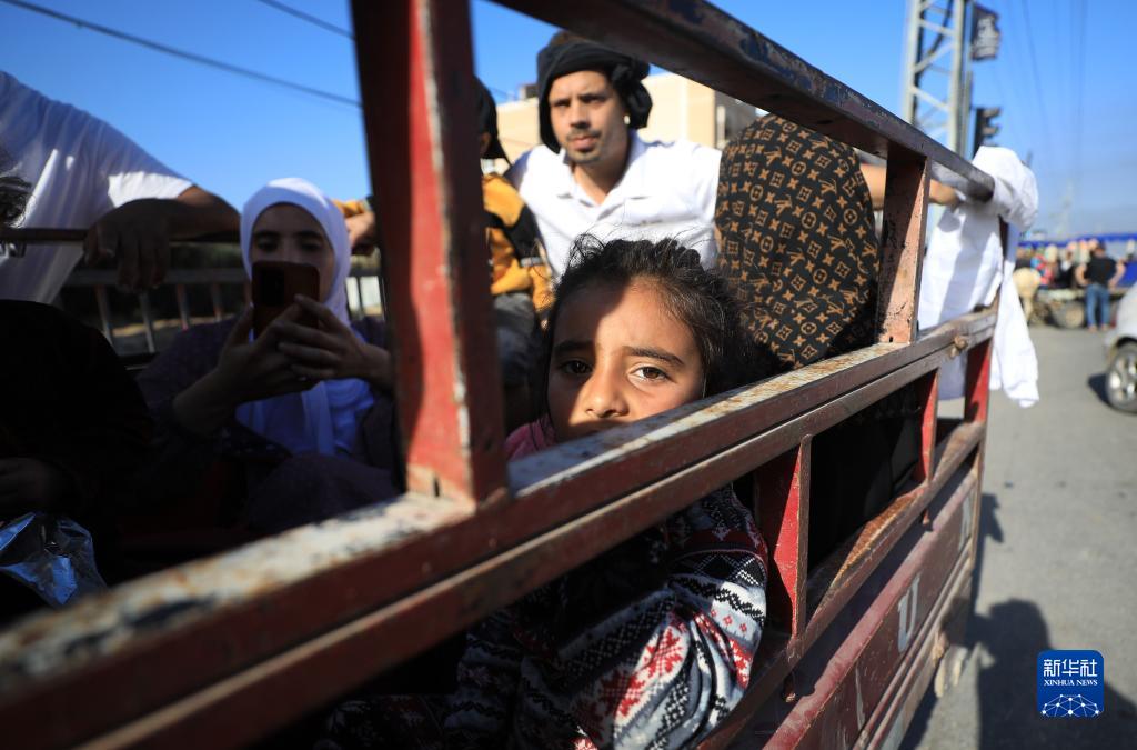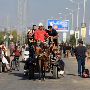 11月7日,在加沙地带中部地区,巴勒斯坦人向南部迁移。