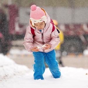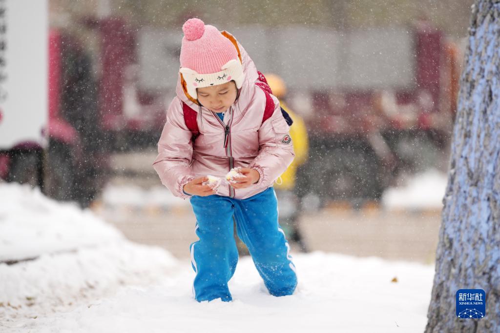 11月8日,一名小女孩在玩雪。
