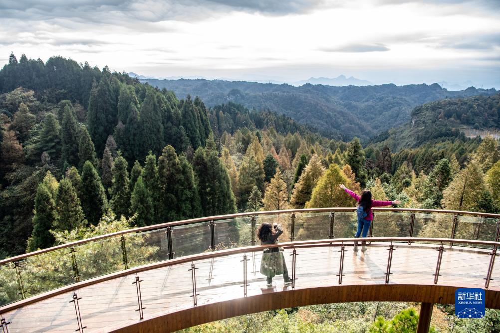11月7日,游客在“178环线”上的著名景点山王坪内参观游览。