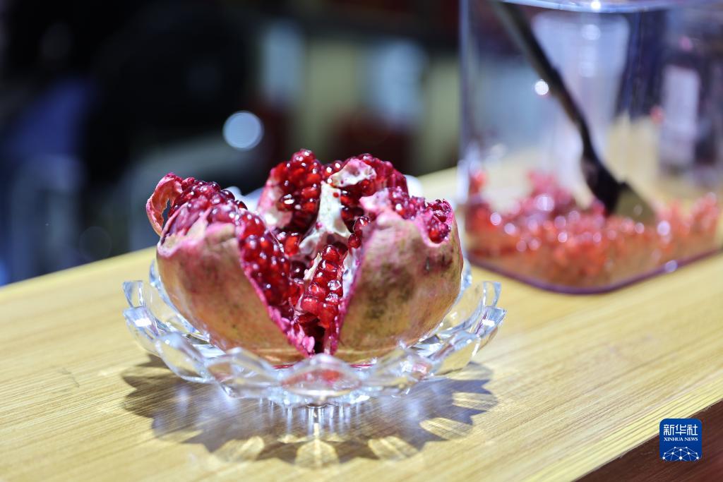 11月6日在第六届进博会食品及农产品展区拍摄的阿富汗坎大哈石榴。