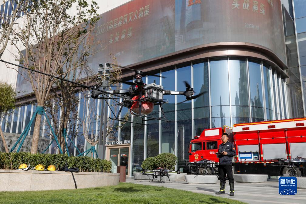 当日,甘肃省消防救援总队在甘肃省兰州市开展应对高层建筑和大型综合体火灾的消防演练。演练结合高层建筑火灾特点,搭建模拟场景,投用新型高喷灭火无人机等进行实战化演练,以提升消防救援队伍灭火救援和协同处置能力。