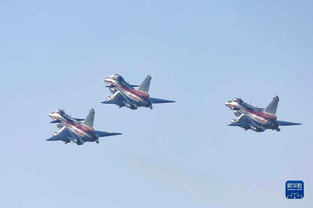 中国人民解放军空军八一飞行表演队三机编队从华北某机场启程(11月7日摄)。